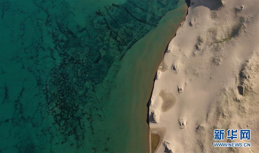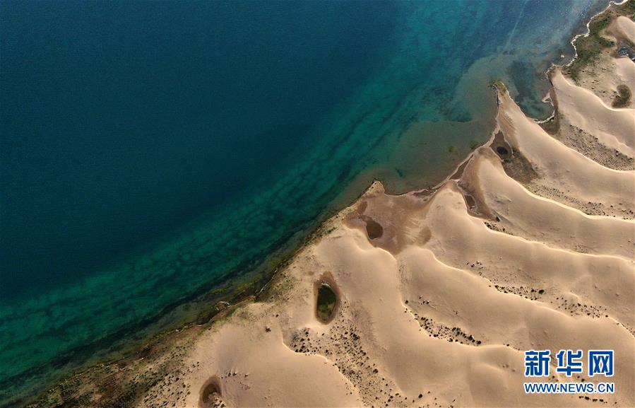 這是青海湖沙島一角(7月28日攝,無(wú)人機(jī)照片)。盛夏傍晚,位于青海湖東北部的沙島,島內(nèi)湖泊星羅棋布,沙丘連綿起伏,風(fēng)景別致。金沙與湖水掩映,在陽(yáng)光的勾勒下形成一幅美麗的畫卷。新華社記者張宏祥攝