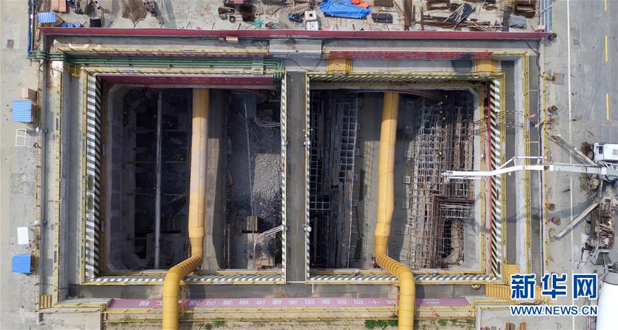 7月29日,“萬里黃河第一隧”——濟南黃河隧道工程施工人員在施工作業(yè)(無人機照片)。新華社記者王凱攝