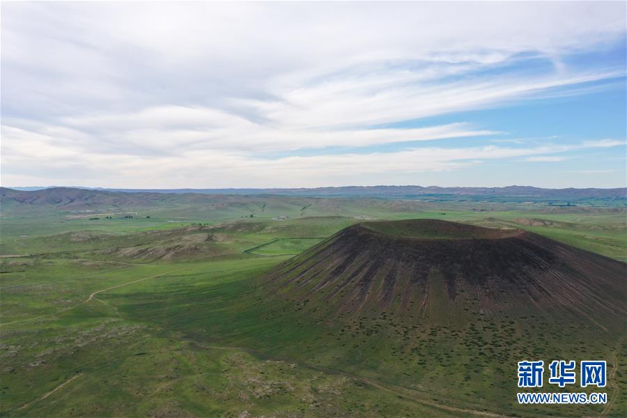 烏蘭哈達火山群位于內(nèi)蒙古自治區(qū)烏蘭察布市察哈爾右翼后旗的草原上。夏日里,綠草青青,一碧千里,坐落在草原上的火山與周邊的風(fēng)景構(gòu)成一幅幅壯美畫卷。