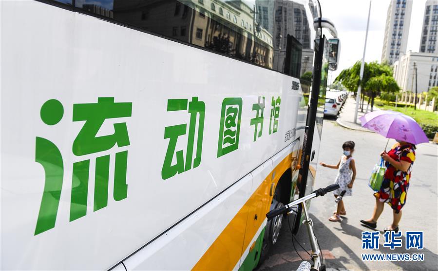 8月5日,在長春市一處社區(qū)服務點,市民進入“流動圖書館”借閱圖書。三千冊圖書,一輛大巴車,穿梭在城市的街頭巷尾。在吉林長春,長春市圖書館利用流動圖書車,定期在市內(nèi)15個固定服務點間巡回流動,為市民提供便捷的圖書借閱服務。新華社記者許暢攝