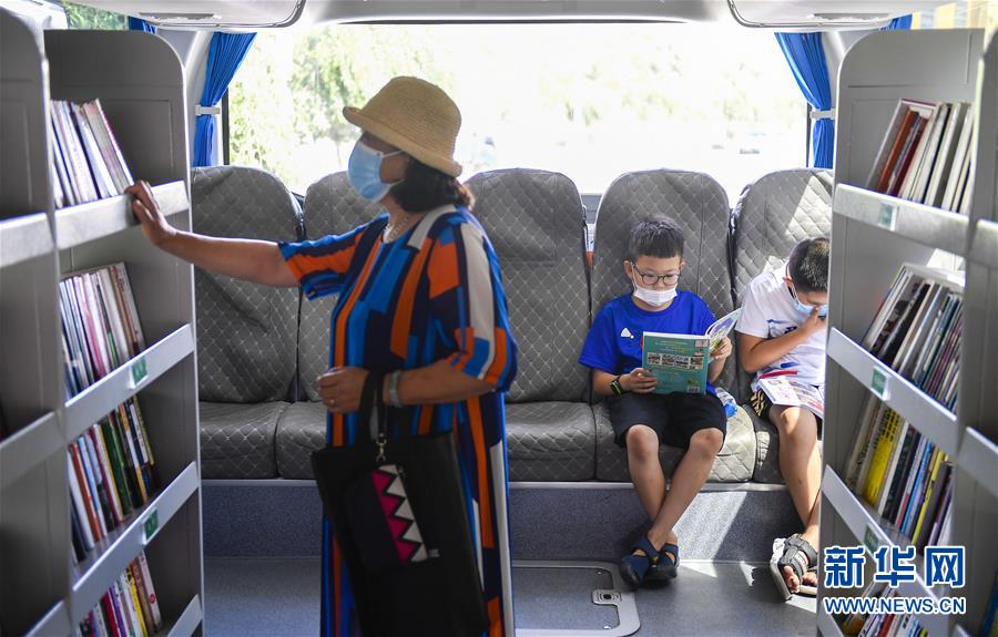 8月5日,長春市民在“流動圖書館”里看書。三千冊圖書,一輛大巴車,穿梭在城市的街頭巷尾。在吉林長春,長春市圖書館利用流動圖書車,定期在市內(nèi)15個(gè)固定服務(wù)點(diǎn)間巡回流動,為市民提供便捷的圖書借閱服務(wù)。新華社記者許暢攝