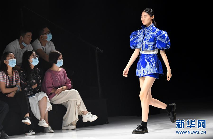 8月6日,模特在時(shí)裝秀上展示時(shí)裝。當(dāng)日,2020中國(河南)國際大學(xué)生時(shí)裝周舉行河南大學(xué)生優(yōu)秀服裝設(shè)計(jì)專場展示。8月5日至7日,2020中國(河南)國際大學(xué)生時(shí)裝周在河南省新密市豫發(fā)密蘭小鎮(zhèn)舉行。新華社記者朱祥攝
