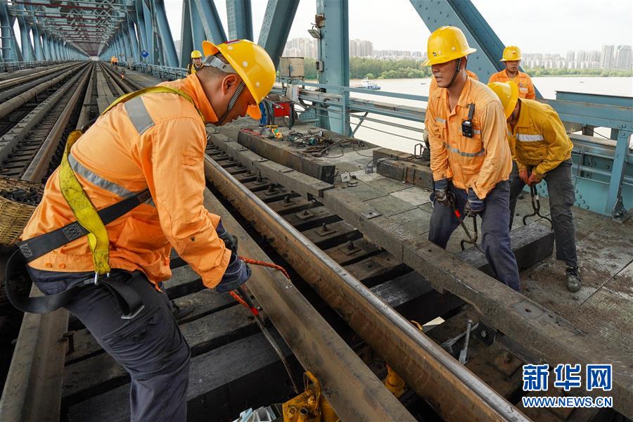 連日來,江蘇省南京市持續(xù)高溫天氣,在中國鐵路上海局集團(tuán)有限公司南京橋工段南京大橋車間,近80名橋隧工不畏高溫酷暑,堅守崗位,確保暑運列車的安全運行。戴著安全帽,穿著防護(hù)服,橋隧工們趁著沒有列車運行的“天窗時間”,每天用腳步“丈量”大橋,保障長江大橋鐵路橋運輸暢通、安全。