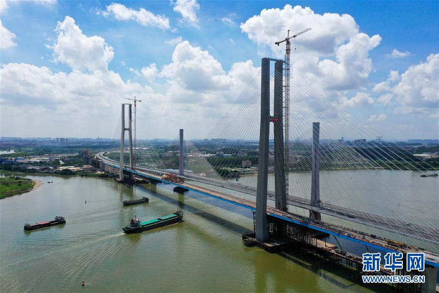 8月9日拍攝的廣州南沙港鐵路跨西江特大斜拉橋最后一塊鋼箱梁吊裝施工現(xiàn)場(chǎng)(無(wú)人機(jī)照片)。當(dāng)日,中鐵十一局承建的粵港澳大灣區(qū)基礎(chǔ)設(shè)施“硬聯(lián)通”重點(diǎn)工程——廣州南沙港鐵路跨西江特大斜拉橋完成最后一塊鋼箱梁吊裝作業(yè),大橋即將合龍。該橋位于廣東佛山市和江門市交界處,全長(zhǎng)1117.5米。新華社記者劉大偉攝。