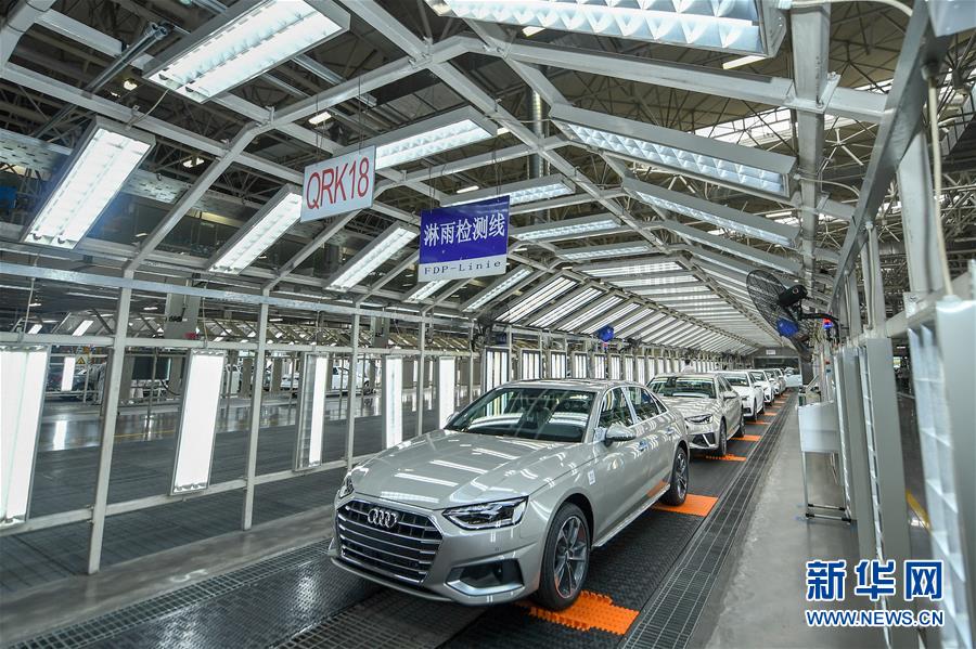 8月10日,在一汽-大眾長(zhǎng)春基地總裝車(chē)間,裝配好的車(chē)輛接受淋雨測(cè)試。中國(guó)第一汽車(chē)集團(tuán)有限公司7月銷(xiāo)售整車(chē)32.2萬(wàn)輛,同比增長(zhǎng)23.2%,延續(xù)上半年的增長(zhǎng)態(tài)勢(shì)。新華社記者張楠攝。