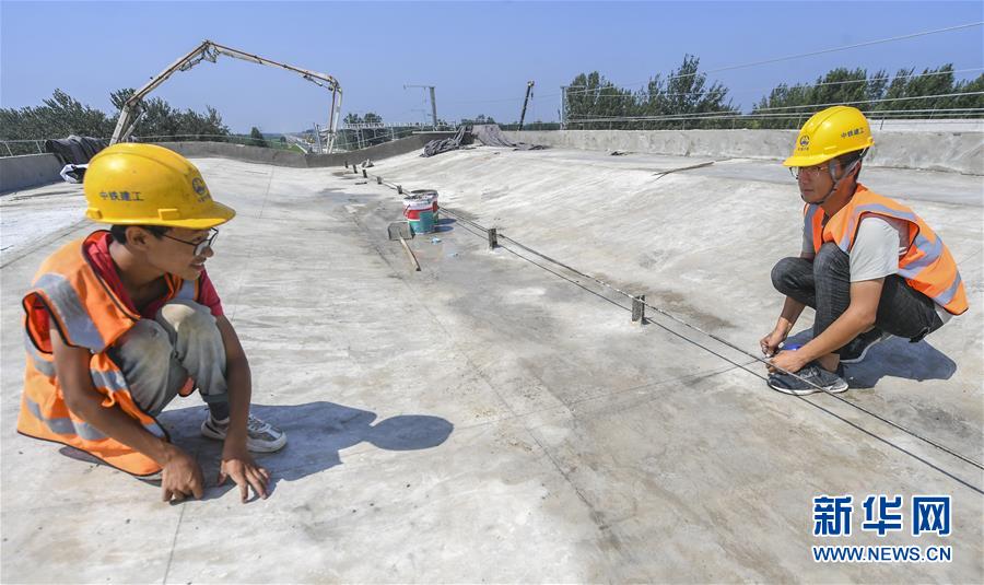 8月10日,工人在京雄城際鐵路霸州北站建設(shè)工地進(jìn)行屋面坡層校核。京雄城際鐵路霸州北站站臺雨棚混凝土結(jié)構(gòu)施工日前全部完成,目前霸州北站已全面轉(zhuǎn)入裝飾裝修和機(jī)電安裝階段,預(yù)計(jì)2020年底投入使用。京雄城際鐵路是連接北京市區(qū)、大興機(jī)場和雄安新區(qū)的重要干線。建成后,將進(jìn)一步完善京津冀區(qū)域高速鐵路網(wǎng)結(jié)構(gòu),便利沿線群眾出行,對于推動京津冀協(xié)同發(fā)展和支撐建設(shè)雄安新區(qū)具有重要意義。新華社記者李曉果攝。