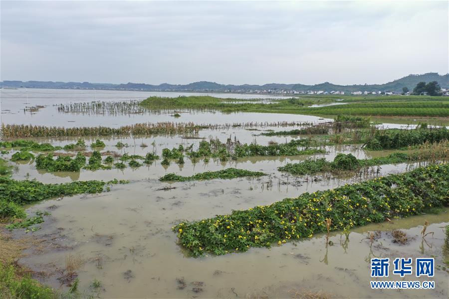 8月12日,重慶市潼南區(qū)桂林街道雙壩村蔬菜基地,部分低洼地帶的農(nóng)作物被洪水淹沒(無人機照片)。受強降雨影響,涪江潼南段迎來過境洪水。新華社記者 黃偉 攝