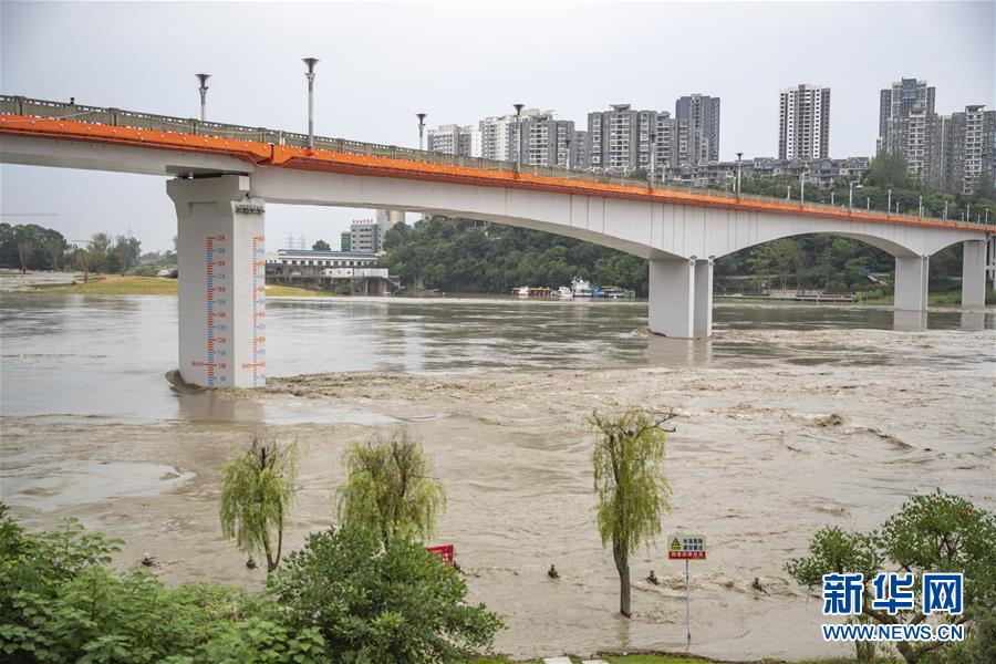 8月12日,洪水通過潼南城區(qū)。受強降雨影響,涪江潼南段迎來過境洪水。新華社記者 黃偉 攝