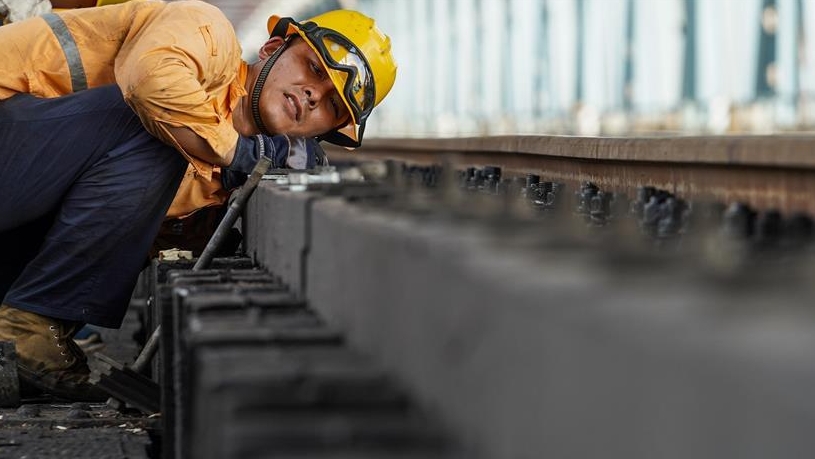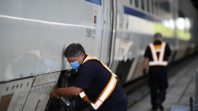 在中國鐵路上海局集團(tuán)有限公司杭州北車輛段合肥運用車間,386名列車檢修工人頭頂烈日堅守崗位,確保暑運列車的安全運行。