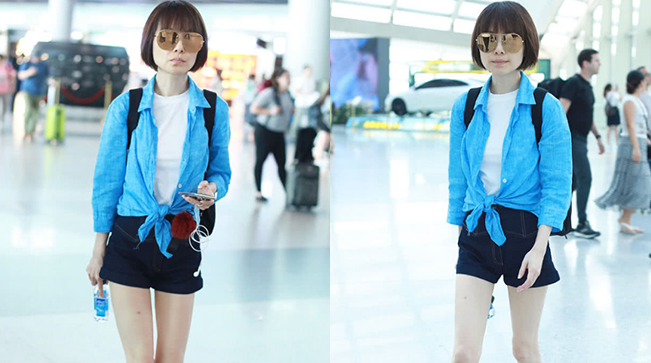 氣場兩米八!秦海璐機場語聊忙不停 工裝風穿搭酷味十足