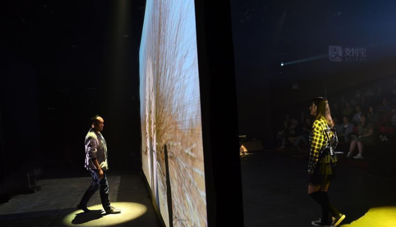 5月14日,國(guó)家會(huì)議中心和奧林匹克塔交相輝映。 當(dāng)晚,一場(chǎng)“空間光影秀”在北京上演。