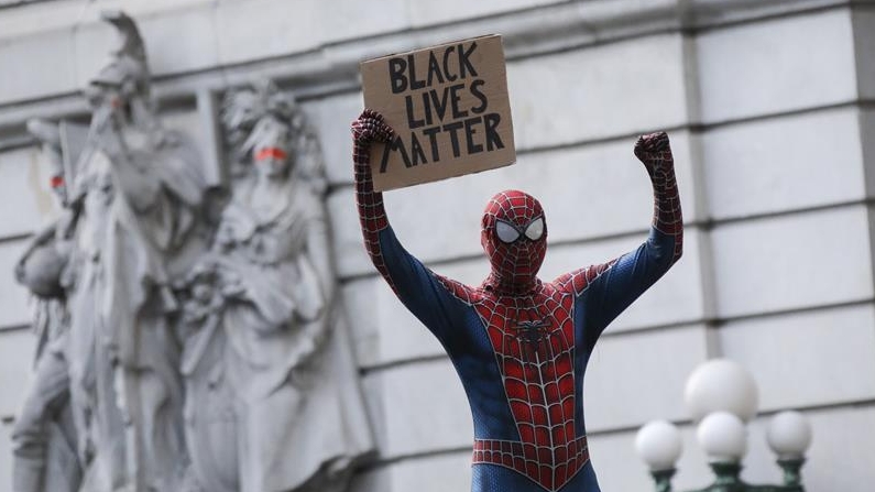由美國明尼蘇達州明尼阿波利斯市非裔男子弗洛伊德遭白人警察暴力執(zhí)法而死一事引發(fā)的各種抗議活動仍在紐約持續(xù)進行。