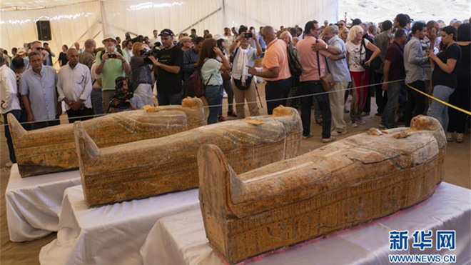 埃及文物部19日在南部城市盧克索舉行的新聞發(fā)布會上宣布,埃及考古隊近期發(fā)掘出30具3000年前的木質(zhì)棺槨。