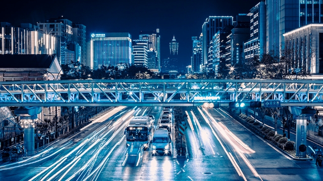 2020年4月24日晚,杭州延安路天橋上拍得杭州環(huán)球中心。
