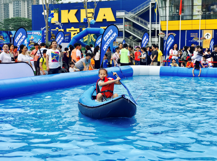 記者在現(xiàn)場看到,迪卡儂在外廣場準(zhǔn)備了攀巖、籃球、高爾夫、皮劃艇、平衡車等諸多運(yùn)動項(xiàng)目供市民體驗(yàn)。不少市民更是帶著孩子們在各項(xiàng)目競賽,玩得不亦樂乎。據(jù)了解,該活動僅在五一期間開放。