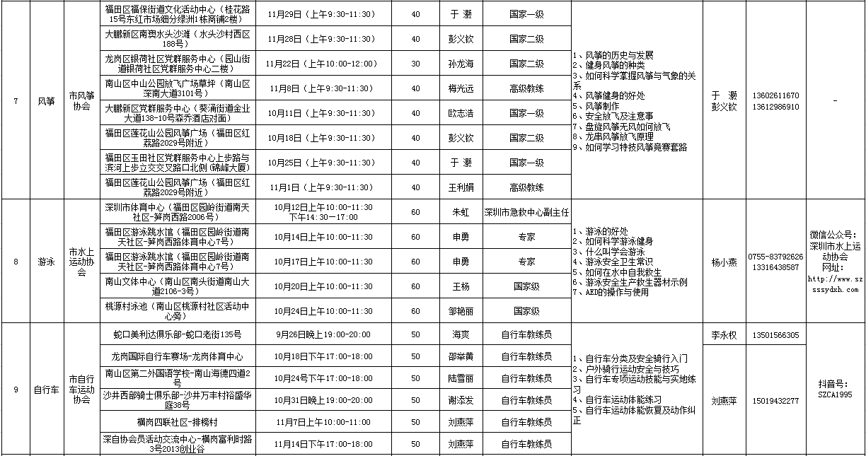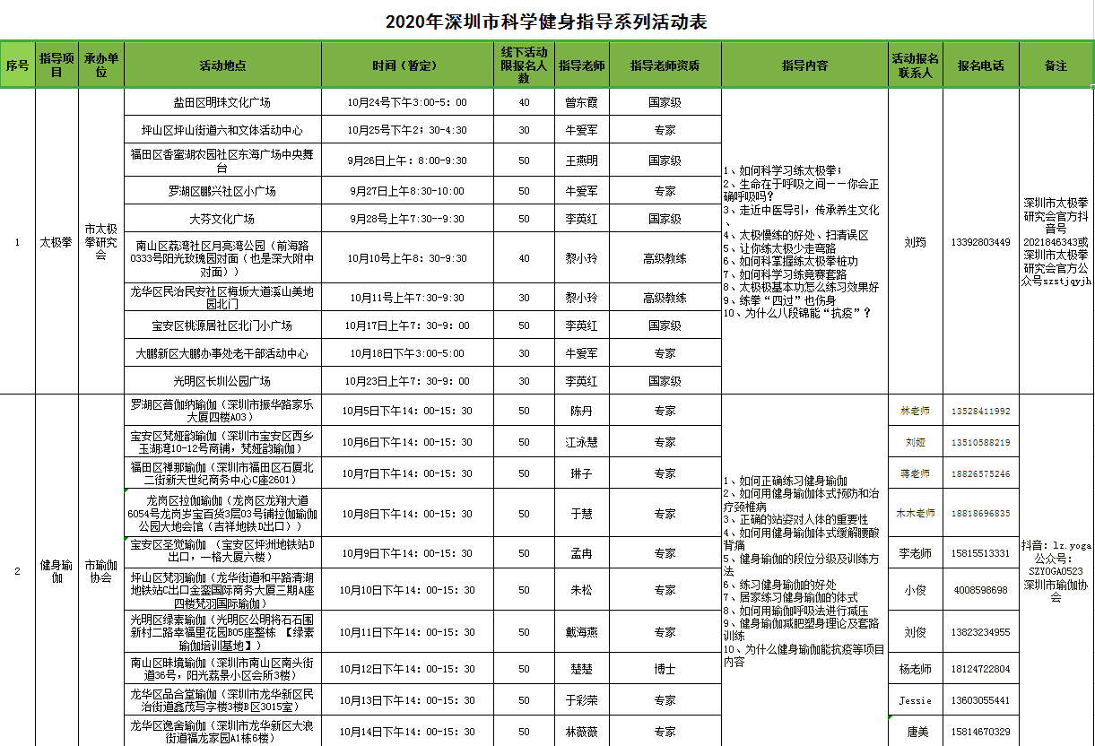 “科學(xué)健身指導(dǎo)活動”由深圳市文化廣電旅游體育局主辦,旨在通過分批、分點等方式,在做好疫情防控的同時,針對不同人群進行戶外健身運動個性化指導(dǎo)服務(wù),助力全市煥發(fā)新活力,促進全民健身高質(zhì)量發(fā)展。活動自8月2日啟動以來,已有眾多一線社會體育指導(dǎo)員和體育產(chǎn)業(yè)專家通過深入社區(qū)現(xiàn)場教學(xué)、錄制視頻等方式,向廣大市民宣傳、講解科學(xué)健身的知識和方法。