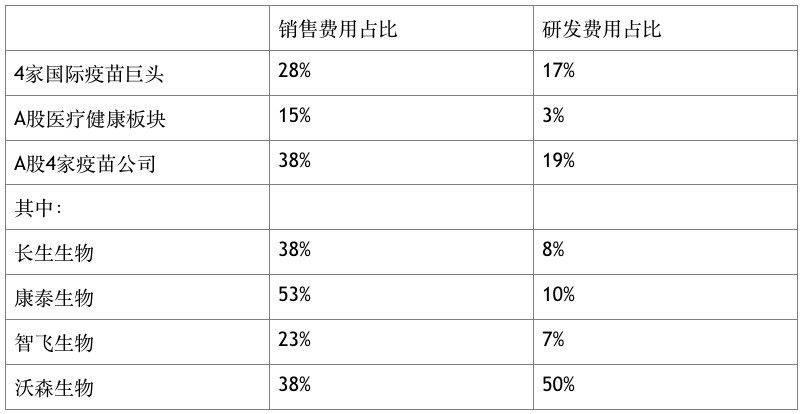 從科研投入來看,其與國(guó)際巨頭亦存在巨大差距。以A股為例,目前上市有4家以疫苗為主業(yè)的企業(yè)。Wind數(shù)據(jù)顯示,2017年4家疫苗公司總銷售費(fèi)用達(dá)18億元,占營(yíng)業(yè)收入38%;4家國(guó)際疫苗巨頭(輝瑞、默沙東、賽諾菲、GSK)總銷售費(fèi)用占比28%。反觀研發(fā)費(fèi)用,A股醫(yī)療保健板塊總研發(fā)費(fèi)用319億元,占總營(yíng)業(yè)收入的2.8%;4家疫苗公司除沃森生物外,研發(fā)費(fèi)用占比均未超過10%;4家國(guó)際疫苗巨頭總研發(fā)費(fèi)用占比17%。
