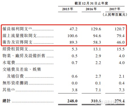 土巴兔的銷售人員開支從2015年的4720萬元大幅增至2016年的1.29億元,并在2017年維持1.2億元左右高位。不過隨著公司規(guī)模化運營的展開,公司線上買量開支卻從1億元降至7940萬元。