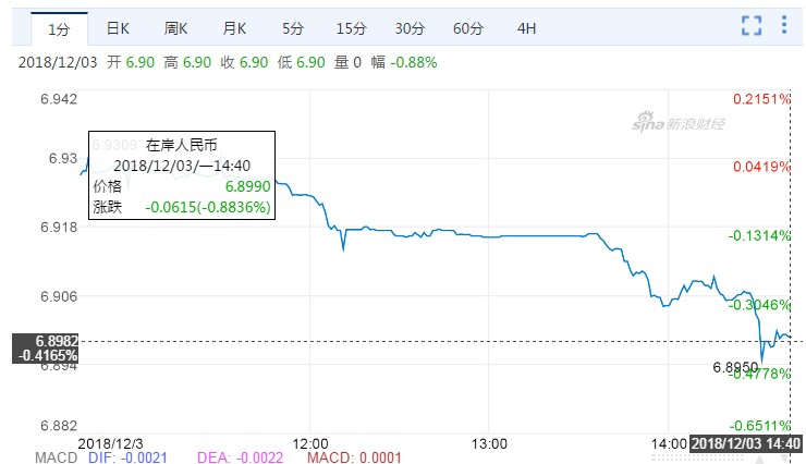 離岸人民幣亦收復6.9關口,升530,報6.8913。