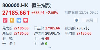 智通財經(jīng)APP獲悉,周日市場傳來好消息,G20峰會上中美元首在貿(mào)易摩擦議題上,中美雙方取得了積極進展,對股市來說是一個極大的利好,短期內(nèi)市場投資氛圍會得到改善。恒生指數(shù)開盤漲2.56%,報27185.66點。國企指數(shù)漲3.05%,報10945.67點。紅籌指數(shù)漲2.29%,報4437.84點。大市盤前成交76.02億港元。