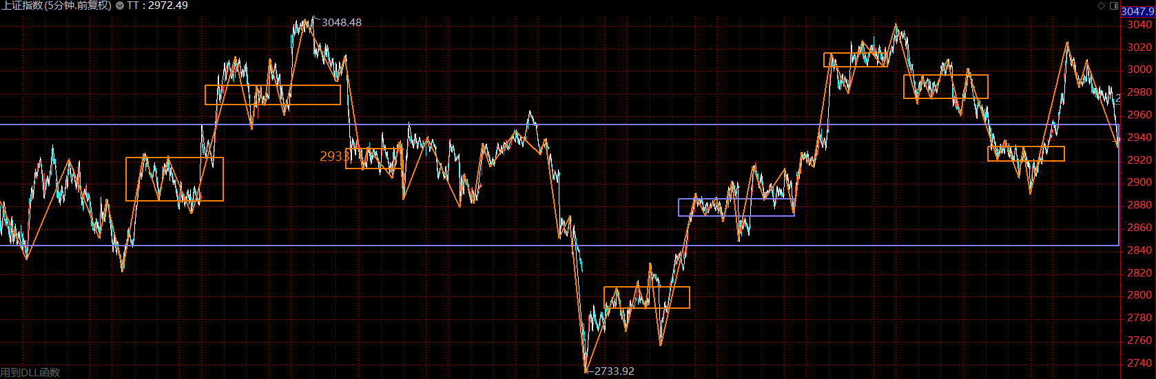 結(jié)構(gòu)上看,上證指數(shù)已跌回了大中樞內(nèi)部,市場(chǎng)情況不樂觀,大概率已經(jīng)確認(rèn)上周一的高點(diǎn)為第二類賣點(diǎn)。那么這里應(yīng)該轉(zhuǎn)向防守為主,反彈中應(yīng)適度降低倉(cāng)位,觀望等待。關(guān)注壓力位2970點(diǎn)附近,可據(jù)此高拋,靜待市場(chǎng)回落后再行布局。