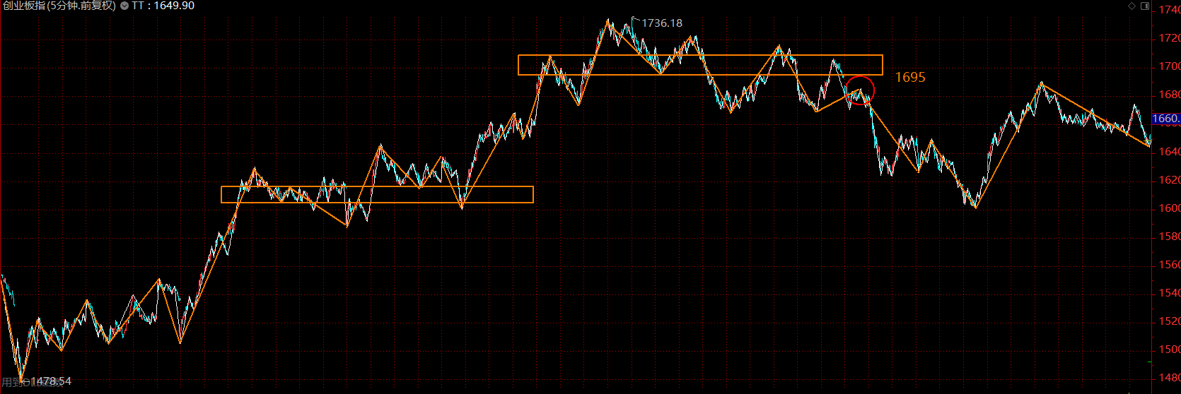 創(chuàng)業(yè)板依舊被上方五分鐘中樞下軌1695點(diǎn)壓制,回踩段連線段都沒有構(gòu)成,比較弱勢(shì)。本周初的反抽如果不能站上1695點(diǎn),大概率還要繼續(xù)回落,完成結(jié)構(gòu)。