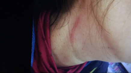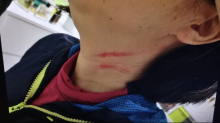 事后,羅小姐的母親張女士很快打電話報(bào)了警。張女士今年52歲,女兒提到母親的傷勢(shì)非常心疼,“我母親頭部腫起,脖子上有三處抓痕(有出血),手指也被抓傷,之后幾天右側(cè)腰部和右膝都感覺(jué)疼痛。”