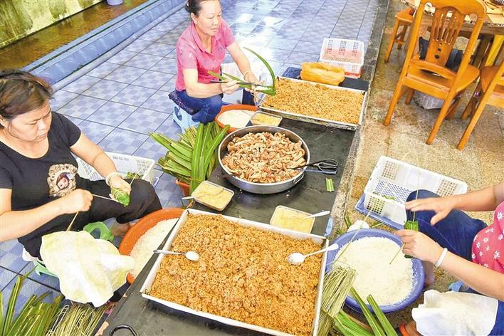 平時,玲姐是一位家庭主婦,每年端午節(jié)前她就變身為“包粽高手”。2017年,張長妹的酒家創(chuàng)下了銷售海膽粽4萬多條的紀錄,最高峰的一天足足包了4000多條海膽粽,玲姐一個人就包了1000條,也創(chuàng)下了個人紀錄。“從早上7點包到晚上差不多12點,最后腰都快直不起來了?!绷峤阏f,從六七歲就開始看著家里的大人包海膽粽,南澳人包粽技巧都是靠耳濡目染,“小時候,家里老人不讓我們包糯米,只能用沙子來練習?!?/p>