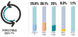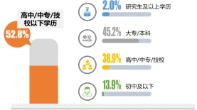 本次調(diào)研中,連鎖餐飲消費者中,23歲-30歲是主要消費者,占比36.1%,30歲以下的消費者占比為65.7%。52.8%的受訪者學歷為高中/中專/技校及以下 。