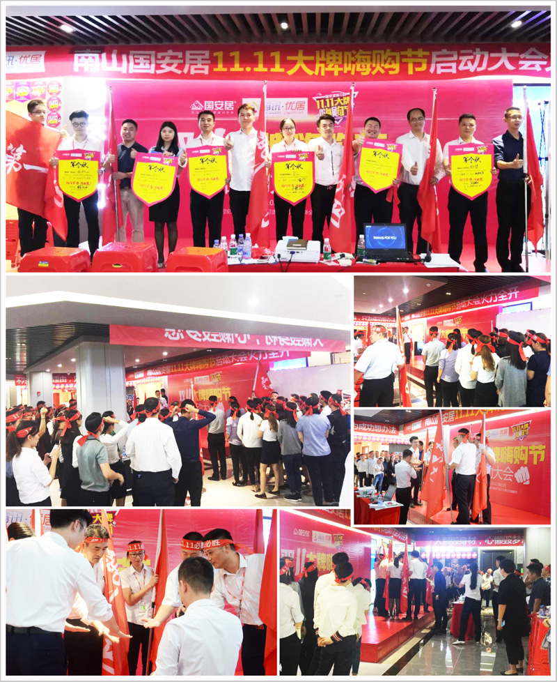 深圳新聞網(wǎng)訊 10月22日下午,“國安居南山店&騰訊優(yōu)居雙11大牌嗨購節(jié)”活動啟動大會在國安居南山店四樓隆重舉行。國安居南山店各品牌商家老板及銷售精英匯聚于此,正式擂響“雙11大促”的出征鼓!