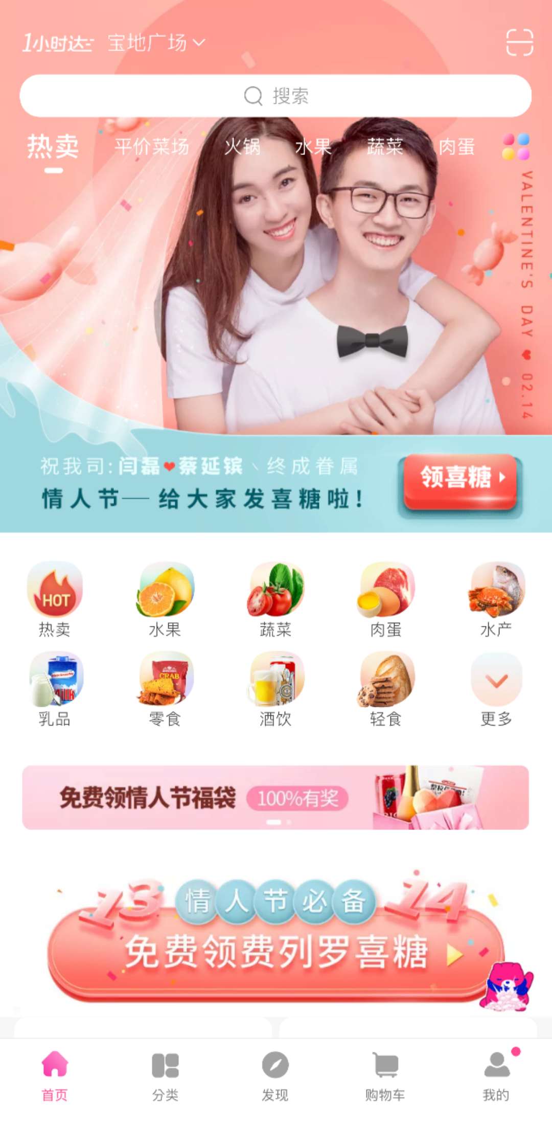 除喜糖的免費福利外,每日優(yōu)鮮華北、華東、華南、華中四大區(qū)也推出不同主題的情人節(jié)專場活動,代表浪漫和甜蜜的巧克力、慕斯蛋糕、草莓、車?yán)遄?、葡萄酒等商品上線。