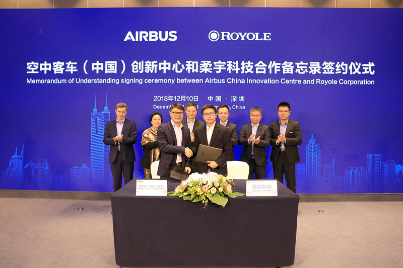 據了解,早在2018年12月,柔宇科技有限公司與空中客車(中國)創(chuàng)新中心在深圳正式簽署戰(zhàn)略合作備忘錄,雙方將就柔性電子技術在飛機客艙等場景的應用和商業(yè)合作開展研究,探索柔性顯示、柔性傳感在客艙等場景內的應用,在客艙環(huán)境、安全性、節(jié)能等方面做進一步提升,為乘客打造未來化、數字化、個性化的乘機體驗。