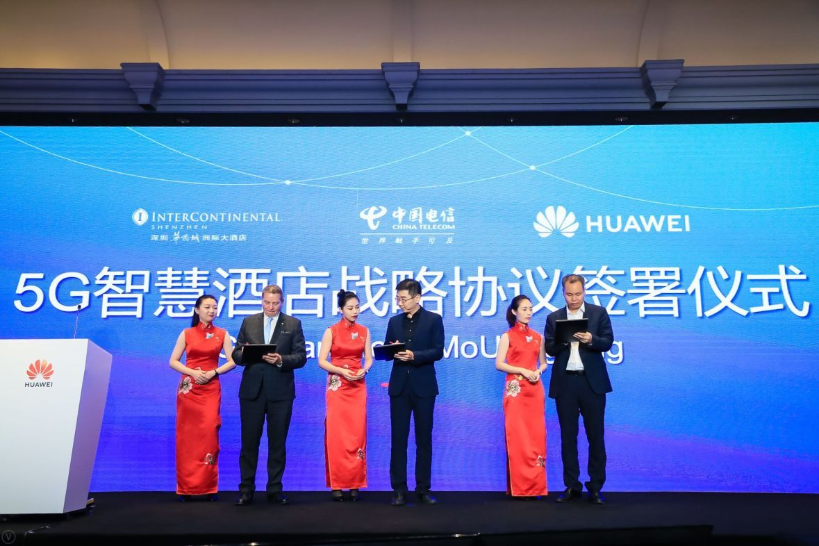 4?月16日,深圳華僑城洲際大酒店、深圳電信、華為簽署5G智慧酒店戰(zhàn)略合作協議,聯合啟動全球首個5G智慧酒店建設。