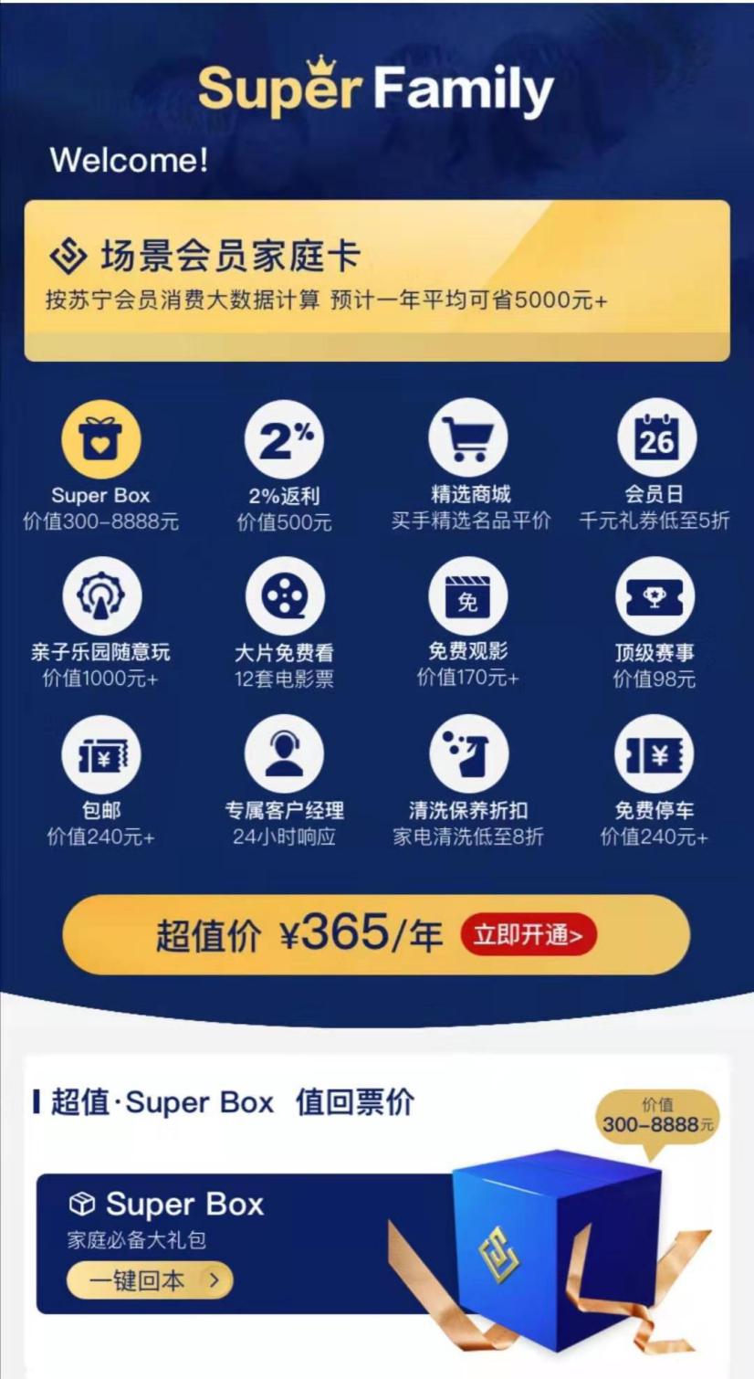 “在設(shè)計(jì)這款會員產(chǎn)品時(shí),我們希望能觸達(dá)每一位家庭成員?!碧K寧相關(guān)負(fù)責(zé)人解釋說:“比如媽媽,她用的更多的可能是購物,那么家庭會員有購物2%的返利;爸爸可能喜歡體育,我們有頂級賽事的觀賽劵贈送;對于孩子,我們提供了免費(fèi)游玩樂園、免費(fèi)看電影、免費(fèi)停車等福利,讓全家人盡情享受親子時(shí)光?!?/p>