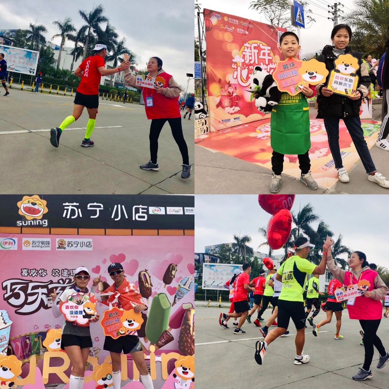 此次馬拉松全程約42公里。在賽道上,從第五公里(包括5公里)開(kāi)始,每2.5公里提供一個(gè)飲水站;每5公里提供一個(gè)飲料站;還有能量供應(yīng)站,以提供香蕉,少女水果,葡萄干,小面包,能量膠,黃瓜,干豆和鹽丸。豐富的補(bǔ)給使跑步者更加放心,并更有動(dòng)力奔跑!還有各式各樣的拉拉隊(duì)加油站,其中35公里處,是由蘇寧小店聯(lián)合伊利、心相印設(shè)置的“萌獅加油站”,他們?yōu)榕苓^(guò)的參賽者加油吶喊,擊掌助力,還有跑者在此處拍照打卡,為此次新年馬拉松留下紀(jì)念。