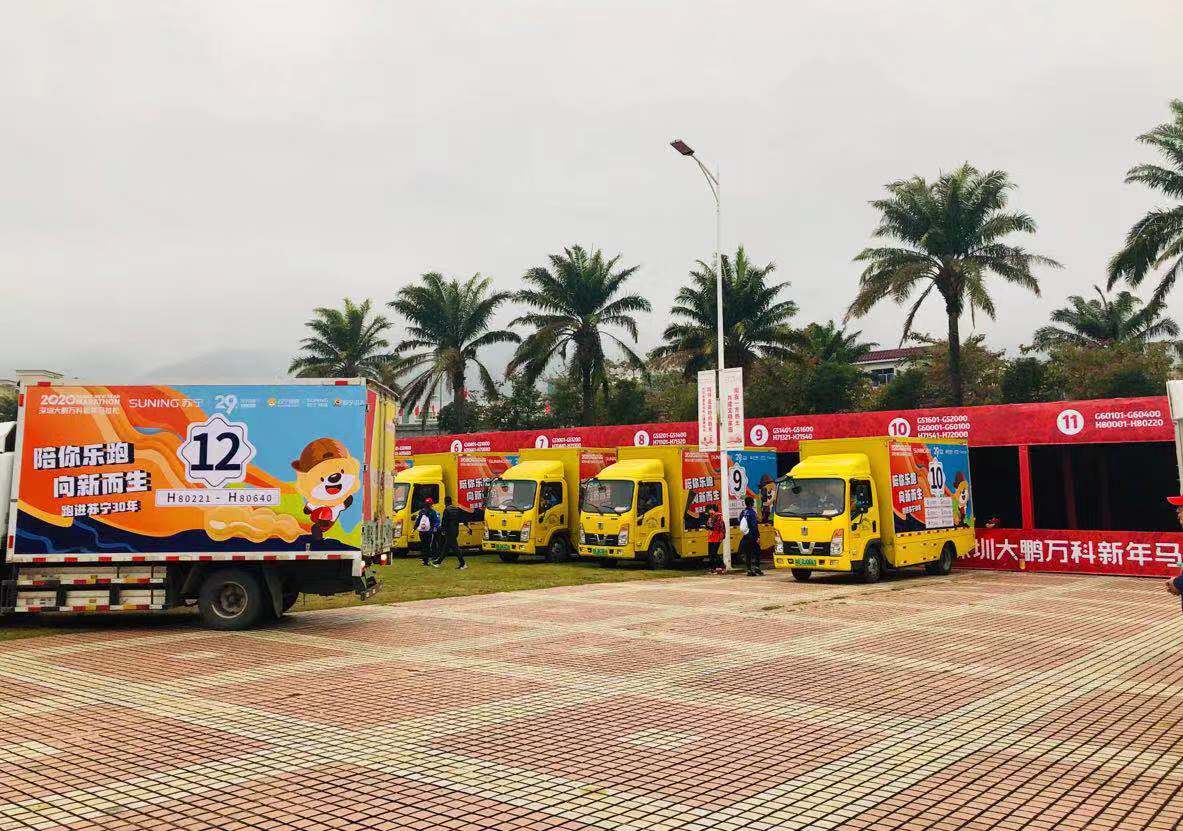 凌晨5點(diǎn),天還未亮,千名跑者已經(jīng)在起點(diǎn)處匯集,陸續(xù)進(jìn)行檢錄,然后將包裹存儲(chǔ),開(kāi)始了各有特色的熱身運(yùn)動(dòng)。值得一提的是,本次提供存包車(chē)服務(wù)由蘇寧物流提供,10輛黃色物流車(chē)經(jīng)過(guò)“改裝”,換上“新衣服”,為跑者的包裹保駕護(hù)航。原來(lái)蘇寧已經(jīng)進(jìn)入第30年了,這次新年馬拉松,蘇寧作為榮耀贊助商加入,與跑友一起奔跑,陪你樂(lè)跑,向新而生!7點(diǎn)30分,隨著起跑槍聲的響起,5000名跑者浩浩蕩蕩地向著終點(diǎn)開(kāi)跑了!