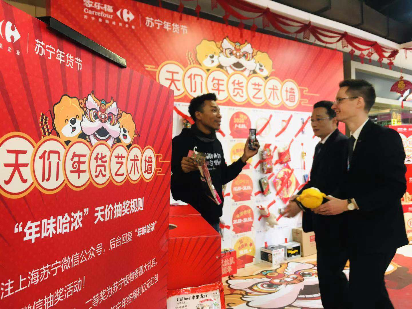 1月10日,是蘇寧收購(gòu)家樂(lè)福的第181天,也正逢上海家樂(lè)福徐涇店也重裝開(kāi)業(yè)的日子。當(dāng)天,在家樂(lè)福中國(guó)的商品副總裁馬邱與網(wǎng)紅藍(lán)鯨杰瑞的帶領(lǐng)下,透過(guò)直播鏡頭,消費(fèi)者看到了家樂(lè)福店中豐富多彩的年貨產(chǎn)品。