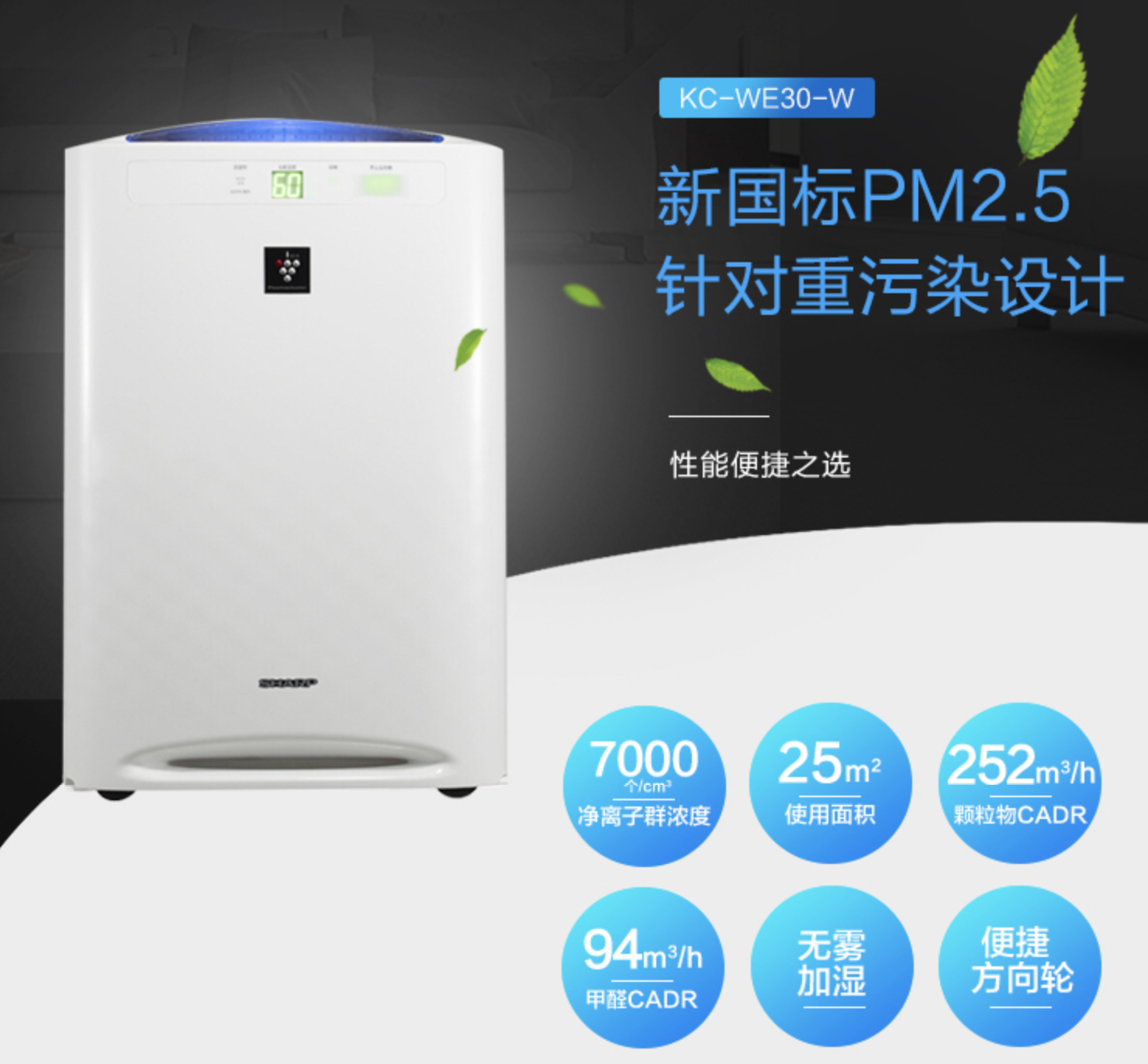 夏普 KC-WE30-W采用的是簡(jiǎn)潔大方的外觀設(shè)計(jì),產(chǎn)品尺寸為393mm*270mm*603mm,凈離子群結(jié)合濾網(wǎng)的凈化方式,能夠有效去除甲醛,PM2.5以及其他有害細(xì)微顆粒物。這款產(chǎn)品具備特有的凈離子群空間凈化技術(shù),對(duì)霉菌和病毒的殺滅有很大幫助,最后離子會(huì)形成水返回到空氣中。