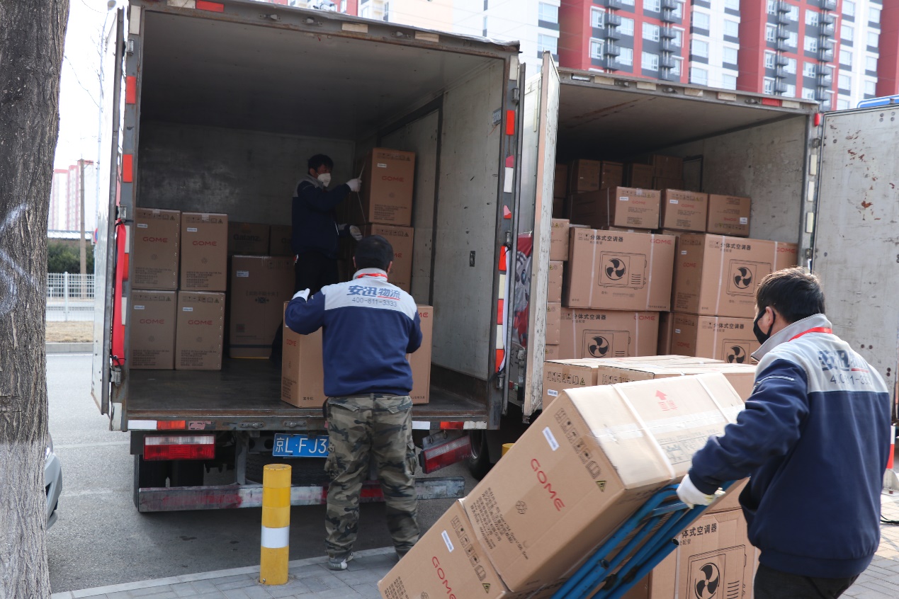 一大早,天剛剛亮,國(guó)美北京安迅物流金盞物流園門前2輛物流車又開(kāi)始了忙碌的物資搬運(yùn)工作。國(guó)美送裝工程師徐海亮說(shuō):“今天的配送時(shí)間緊任務(wù)重,大家天沒(méi)亮就來(lái)到物流園,生怕耽誤了發(fā)車。我們都希望為北京當(dāng)?shù)氐囊咔榉揽刈鳇c(diǎn)事?!彼麉⑴c了前日的第一批物資配送工作,又自告奮勇地加入了此次送裝工作。經(jīng)過(guò)2小時(shí)的車程,國(guó)美送裝工程師們又開(kāi)始投入了緊張的家電安裝工作中,他們不但將每一臺(tái)電器安裝到位,還反復(fù)調(diào)試并詳細(xì)講解使用方法。當(dāng)天下午2點(diǎn),捐贈(zèng)的物資全部安裝完畢。