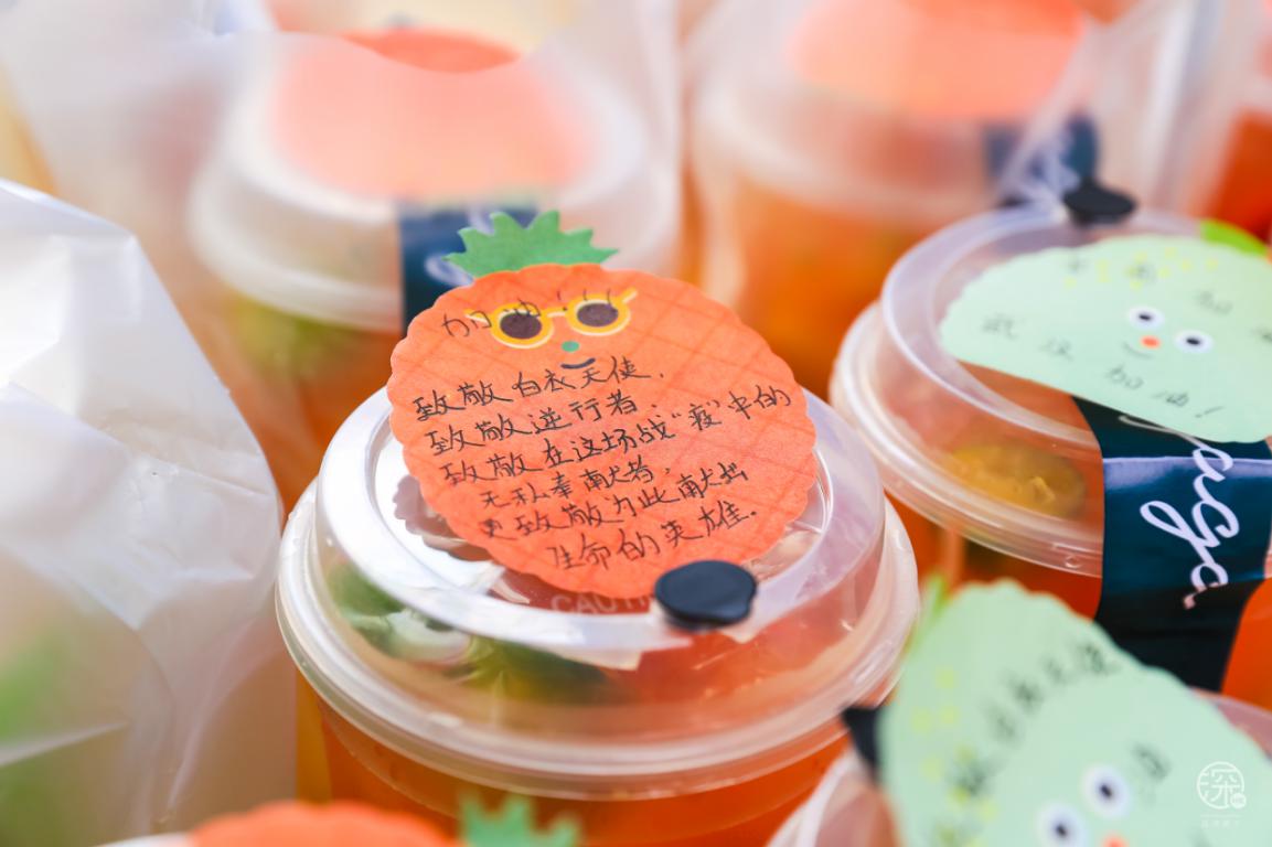 當(dāng)然除了熱心市民,來獻(xiàn)愛心的還有卓悅INTOWN購物中心內(nèi)的商戶:瑞幸咖啡、麥當(dāng)勞、太平洋咖啡、CoCo都可、湊湊、gaga鮮語、HUN混果汁、享甜、Bangs Burger燕遇、辣可可現(xiàn)炒黃牛肉、旬野菜在知道這次活動(dòng)后,紛紛主動(dòng)提供食物或飲品,給疫情期間始終奮斗在一線的服務(wù)人員們,他們值得我們好好愛著。