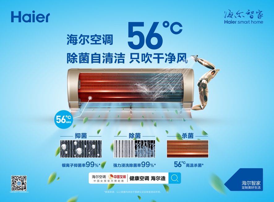 不僅如此,針對(duì)空調(diào)臟、清洗難的問(wèn)題,海爾還升級(jí)了56度C除菌自清潔空調(diào)。當(dāng)空調(diào)開啟自清潔后,蒸發(fā)器溫度可達(dá)56℃以上,達(dá)到除菌除塵的效果。
