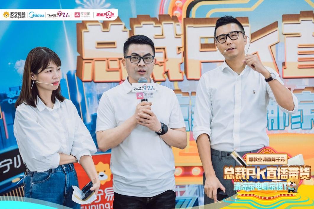 下午五點(diǎn)到六點(diǎn),繼上場總裁PK直播后,深圳蘇寧聯(lián)合美的攜手飛揚(yáng)97.1廣播電臺主播持續(xù)再開展一場趣味電臺直播,開播期間觸達(dá)近500萬粉絲,其中999元爆款空調(diào)以及美的國米定制版空調(diào)在開播僅30分鐘就被搶購一空,在總裁們的不斷加碼中,整個直播過程中滿足超過2000名顧客的購物需求。