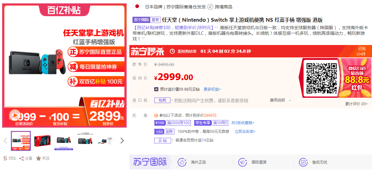 數(shù)據(jù)顯示,6月29日-7月5日,蘇寧國際口紅銷量增長明顯,最受歡迎的口紅色號為mac小辣椒磚紅色。為了給高考生鼓勵,家長們也是操碎了心。數(shù)據(jù)顯示,6月29日-7月5日,蘇寧國際switch游戲機也銷售也創(chuàng)新高。目前,蘇寧國際該產品正參與百億補貼,優(yōu)惠力度與618期間差不多,不少家長選擇購買這款產品作為孩子們苦讀的獎勵。