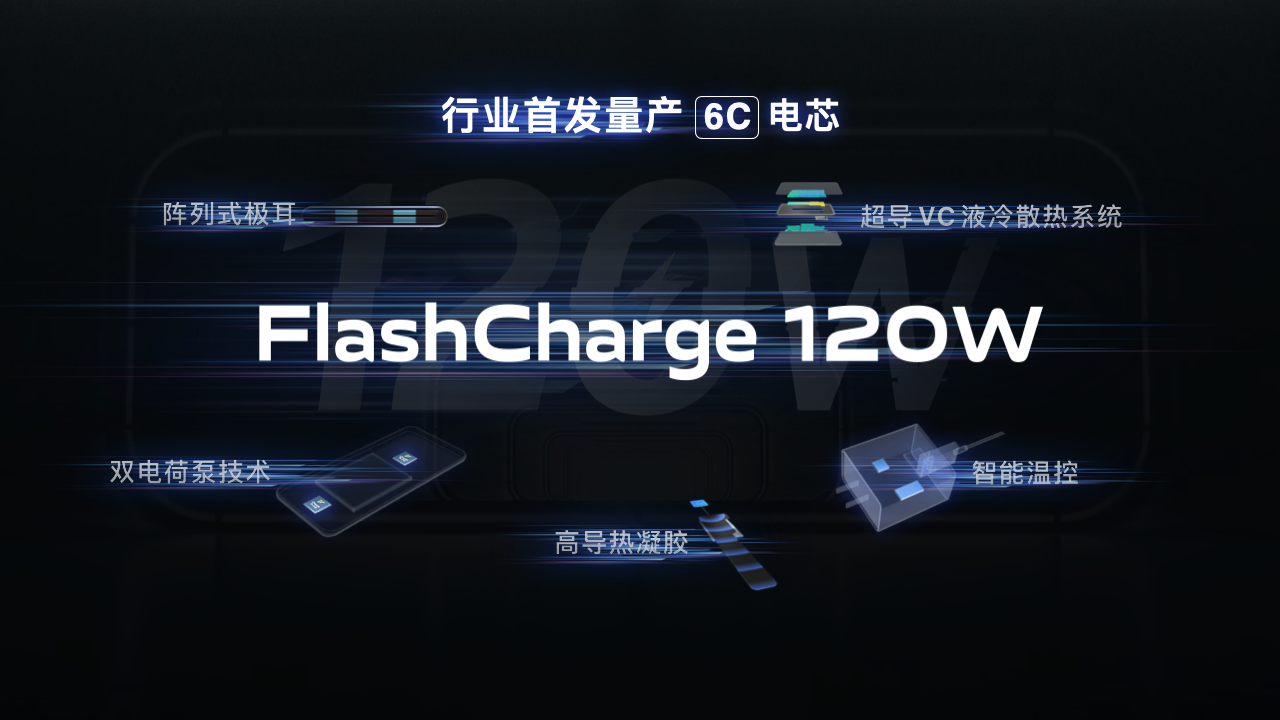 脫胎于2019年備受關注的 vivo Super FlashCharge120W,此次的120W超快閃充技術同樣基于20V /6A的充電方案。新技術綜合考量了能量轉(zhuǎn)化、溫升控制、充電安全、器材兼容性等多個關鍵因素,將充電轉(zhuǎn)化率由過去的97%提升至98.5%。通過手機行業(yè)首發(fā)的6C電芯,配合半壓雙電荷泵、雙電芯串聯(lián)等技術,可將20V6A轉(zhuǎn)化為5V12A的電流,使將15分鐘充至100%*變?yōu)榱爽F(xiàn)實(*數(shù)據(jù)來源iQOO實驗室,測試機熄屏狀態(tài)下,從1%開始計算)。