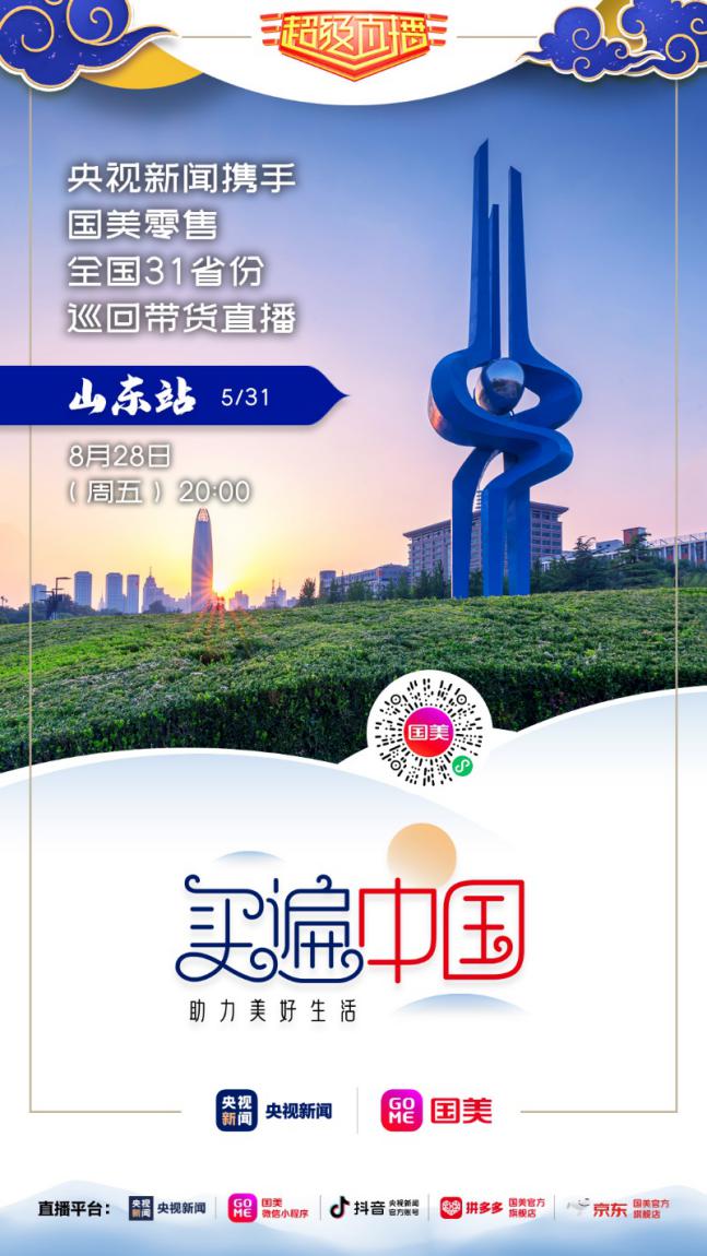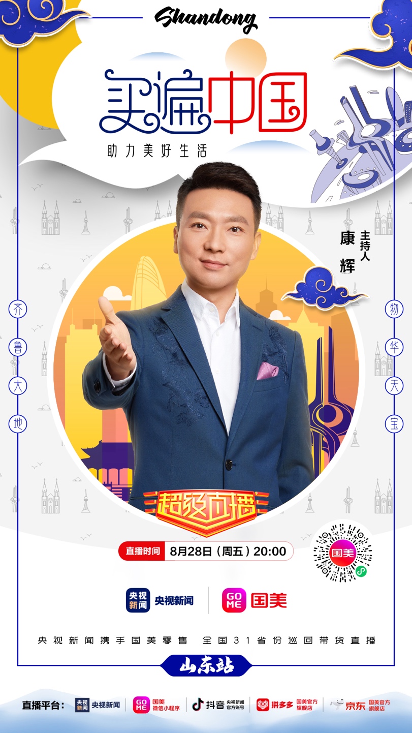 8月28日晚20點(diǎn),記得鎖定國美微信小程序、拼多多國美官方旗艦店、京東國美官方旗艦店,及央視新聞的客戶端、抖音號,“買遍中國”山東站直播間,一起來看“央視大 boy”康輝帶貨狂奔!(常軍平)