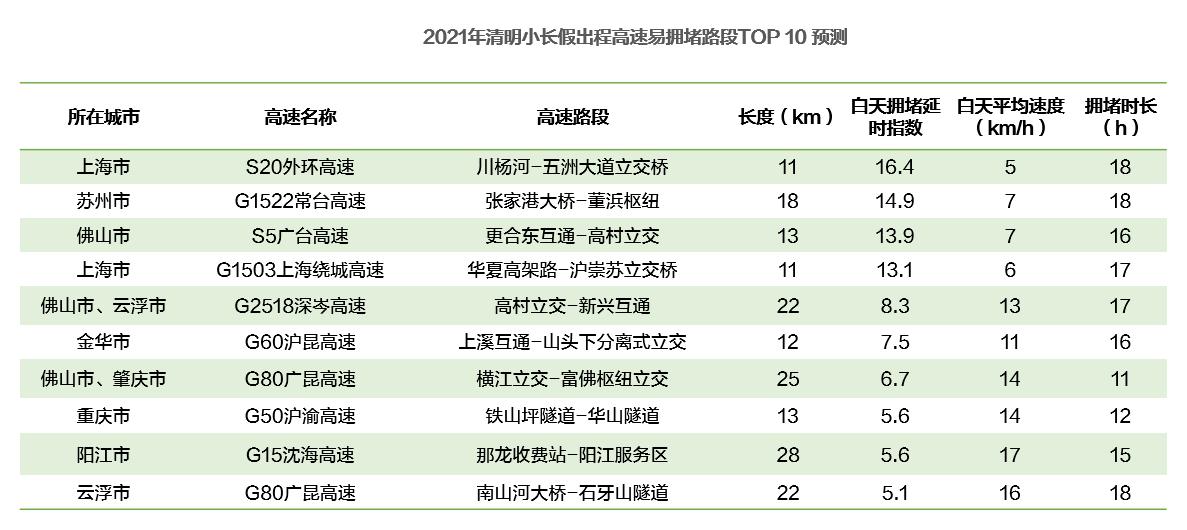 全國高速擁堵預(yù)測:4月3日為出程高峰,4月5日為返程高峰