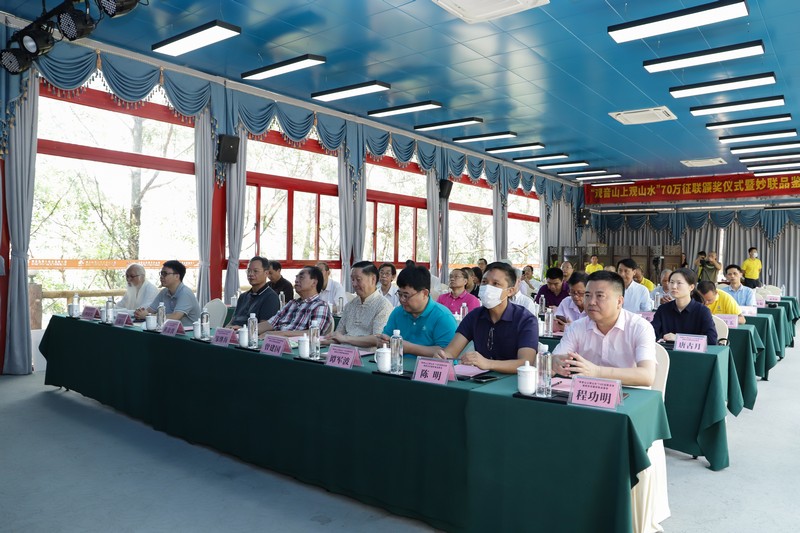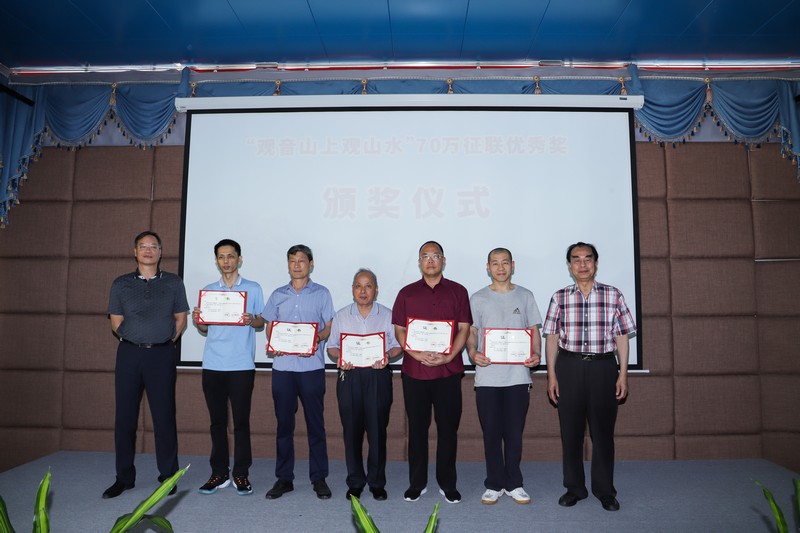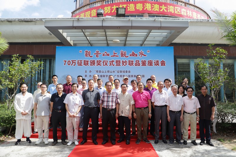 見圳客戶端·深圳新聞網(wǎng)2021年5月18日訊(記者 常軍平)“觀音山上觀山水”70萬征聯(lián)活動終有結(jié)果,評選出15句優(yōu)秀下聯(lián),最佳下聯(lián)空缺,并于5月17日在東莞觀音山舉行了頒獎儀式及妙聯(lián)品鑒座談會?;顒蝇F(xiàn)場,楹聯(lián)家們雅聚一堂,共同見證了本次征聯(lián)活動優(yōu)秀獎的頒出。以楹聯(lián)為媒,進(jìn)行交流互動。活動期間,組委會代表東莞觀音山將結(jié)余款項67萬元悉數(shù)捐給東莞樟木頭鎮(zhèn)慈善會。鑒于觀音山在推動楹聯(lián)文化的傳承發(fā)展做出的突出貢獻(xiàn),被中國楹聯(lián)學(xué)會授予“中國楹聯(lián)文化名山”稱號。