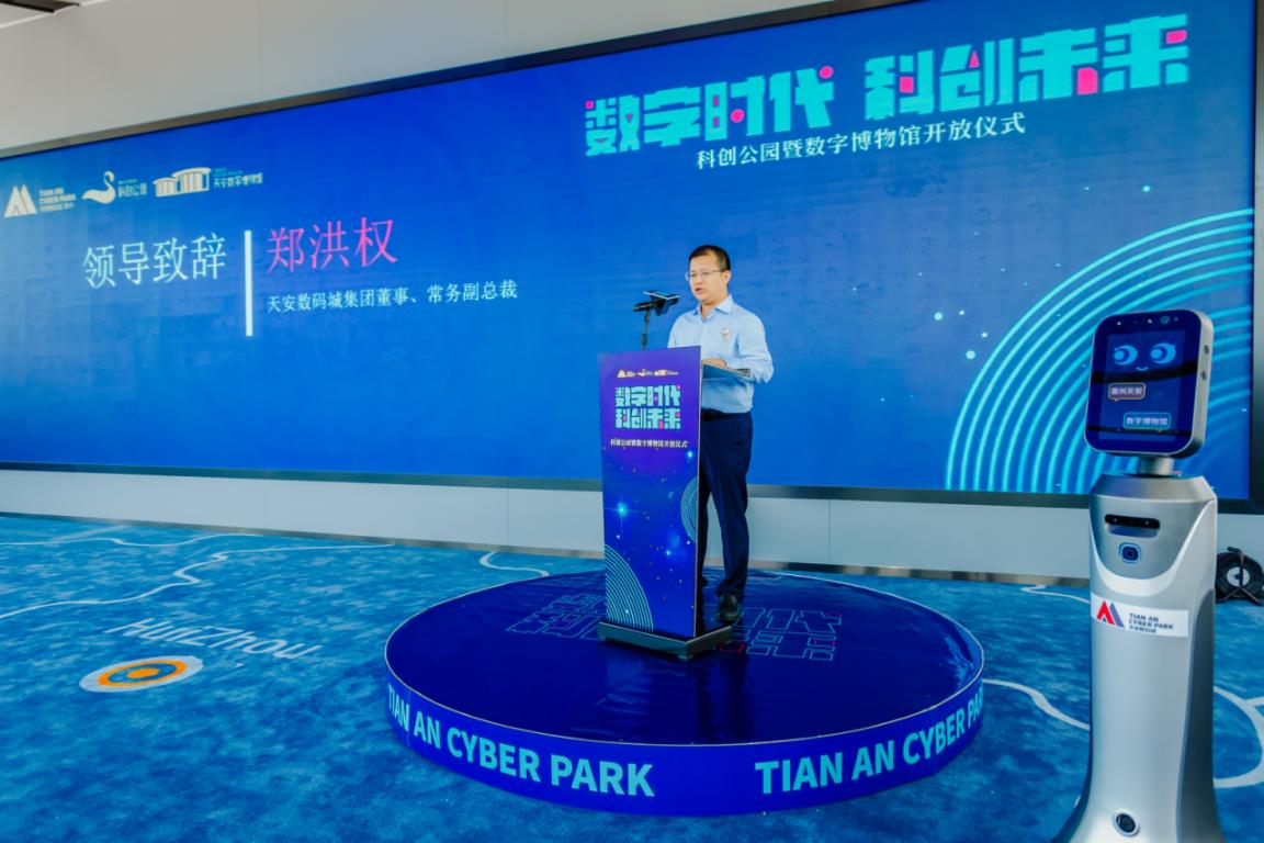活動(dòng)開場(chǎng),天安數(shù)碼城集團(tuán)董事、常務(wù)副總裁鄭洪權(quán)致歡迎辭。鄭權(quán)表示,惠州天安數(shù)碼城科創(chuàng)公園與數(shù)字博物館的建設(shè),是順應(yīng)數(shù)字化、網(wǎng)絡(luò)化、智能化融合發(fā)展新趨勢(shì),推動(dòng)智慧城市發(fā)展和智慧產(chǎn)業(yè)生態(tài)體系建設(shè)效應(yīng)的呈現(xiàn)?;葜萏彀矓?shù)碼城將緊抓惠州蝶變的關(guān)鍵時(shí)機(jī),圍繞“科學(xué)科技科普科幻科創(chuàng)科研科教”七科立園,深度融入省“一核一帶一區(qū)”區(qū)域發(fā)展格局,用集團(tuán)具有生命力和成長(zhǎng)性的運(yùn)營(yíng)體系,適配惠州城市發(fā)展模式,打造具有惠州產(chǎn)業(yè)基礎(chǔ)特色的產(chǎn)業(yè)園區(qū),以企業(yè)的發(fā)展,促進(jìn)產(chǎn)業(yè)的優(yōu)化和城市的進(jìn)化,攜手政府、企業(yè)、社區(qū)一同打造充滿生機(jī)和無限科技想象的科技園區(qū)。