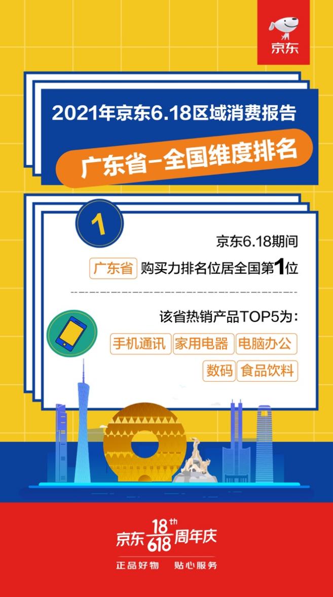 讀特客戶端·深圳新聞網(wǎng)2021年6月18日訊 (記者 田志強(qiáng))2021“京東618”18周年慶,你有在京東買到自己心儀的商品嗎?這可是抄底式購(gòu)物的最佳時(shí)機(jī)。不過,也不要只顧著看自己的,其實(shí)全國(guó)各個(gè)省份的消費(fèi)情況也十分有趣。里面包含了大量的信息,這一次,我們就來揭秘,廣東省在本屆618中的表現(xiàn)。