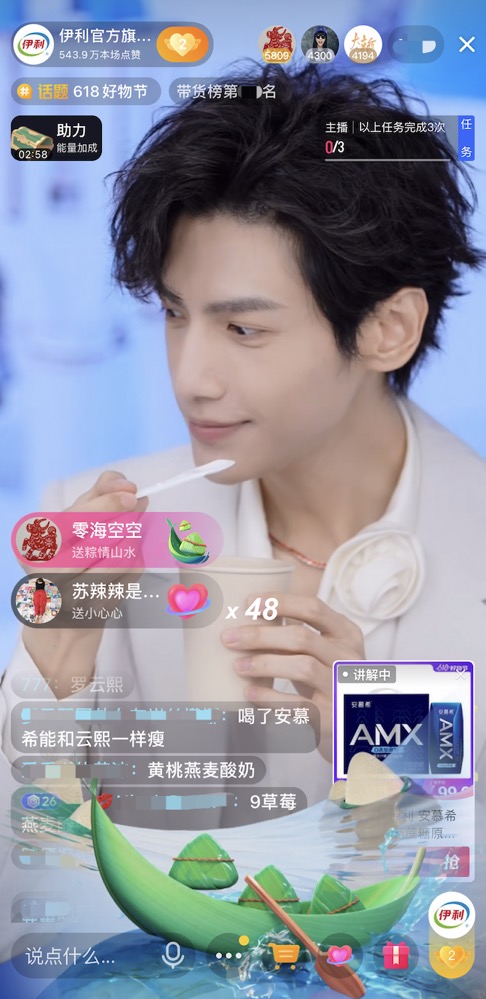 在新營銷上,伊利旗下安慕希品牌憑借強(qiáng)大的品牌力,在618期間聯(lián)合平臺(tái)打造首個(gè)乳品品牌狂歡日。邀請(qǐng)品牌形象大使羅云熙空降伊利抖音直播間,與消費(fèi)者進(jìn)行互動(dòng)直播,內(nèi)容寵粉的同時(shí)高效轉(zhuǎn)化銷售。憑借寵粉互動(dòng)吸引抖音平臺(tái)年輕消費(fèi)者群體,狂歡日當(dāng)日直播間消費(fèi)者中,年輕人群比例高達(dá)70%。